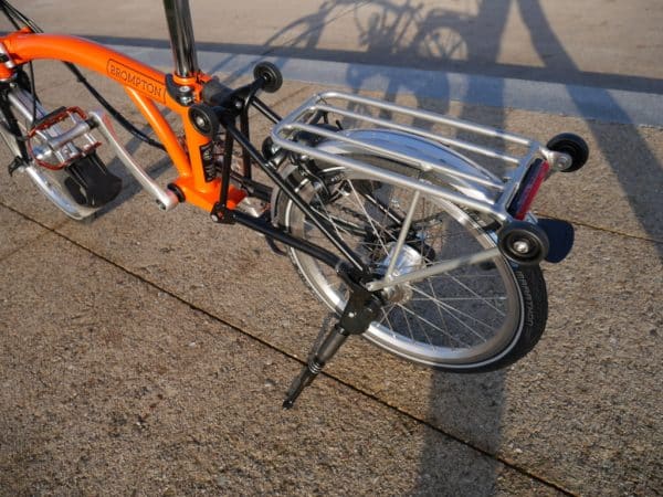 Stationnez votre vélo sans le plier. Très pratique lorsque votre porte-bagage est déjà occupé.